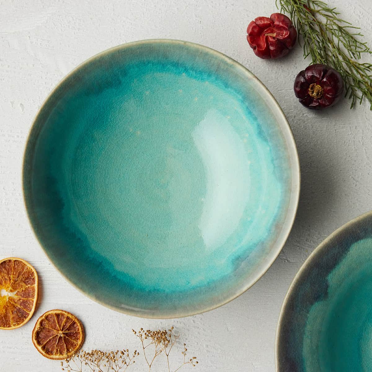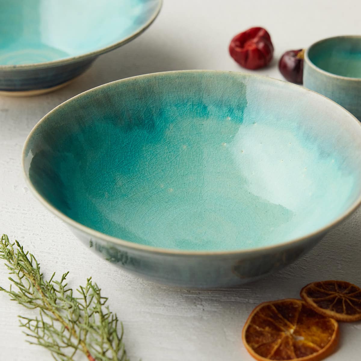 創業約80年の信楽焼窯元『丸十製陶』と、恵比寿のテーブルウェアセレクトショップ『THE HARVEST』の協力を得たコラボレーションアイテム。 ガラス系の2色のガラス薬を備えて、まるで氷のようなヒビ割れ模様(貫入)を表現。 凛とした表情の中にも、どこか優しさと温かさを感じさせ、趣のある風合いに仕上げました。