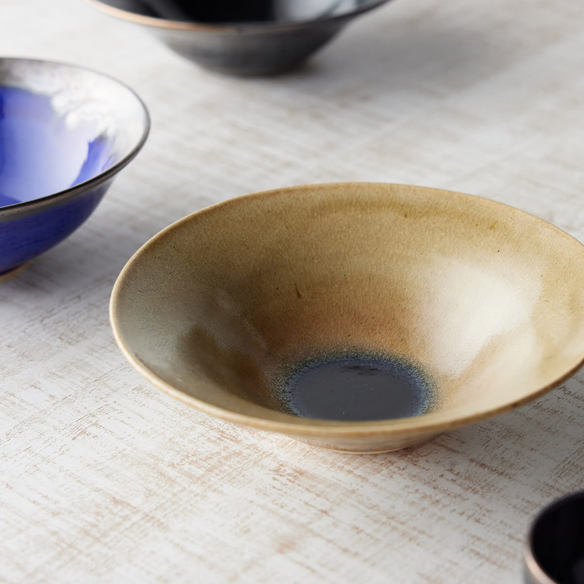四季彩陶シリーズの第8弾『夏至』の朝凪 (あさなぎ)は、日の出前の一瞬の静寂。風が止み、湖の水面が鏡のように穏やかになるこの時、世界が静かに息を潜める。夜明けと共に訪れる静けさと平和、そして新しい一日の始まりをそっと祝福する自然の美しい瞬間を表現するため、器の中心に広がる神秘的な色合いで焼きがる様に数色の釉薬を掛け分けて焼き上げました。