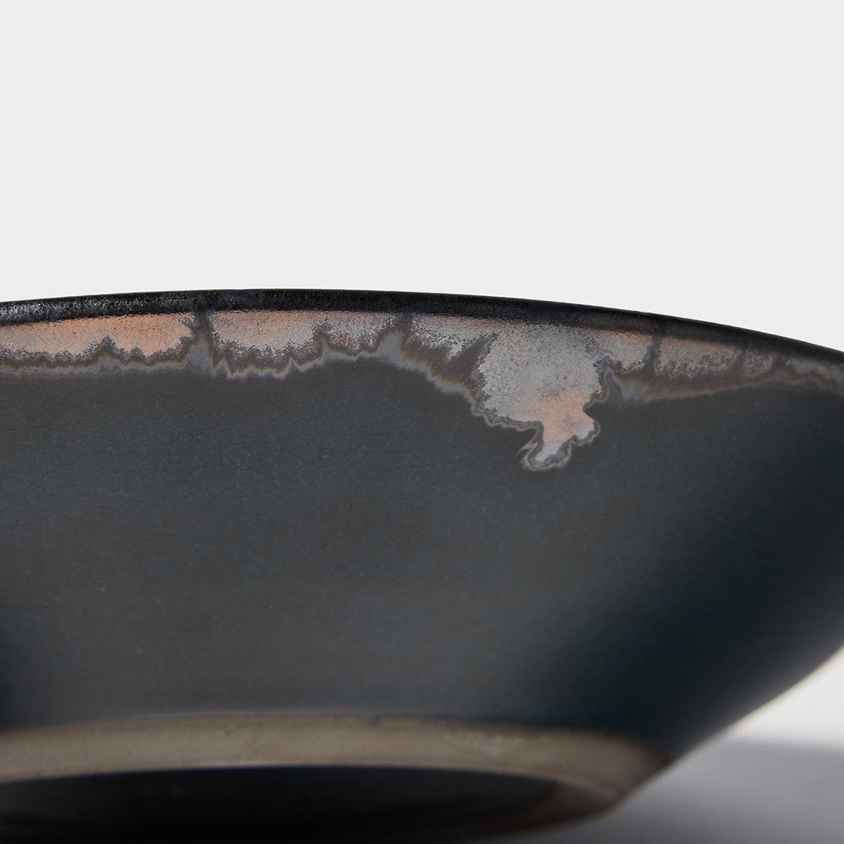 創業約80年の信楽焼窯元『丸十製陶』と、恵比寿のテーブルウェアセレクトショップ『THE HARVEST』の協力を得たコラボレーションアイテム。 ガラス系の2色のガラス薬を備えて、まるで氷のようなヒビ割れ模様(貫入)を表現。 凛とした表情の中にも、どこか優しさと温かさを感じさせ、趣のある風合いに仕上げました。