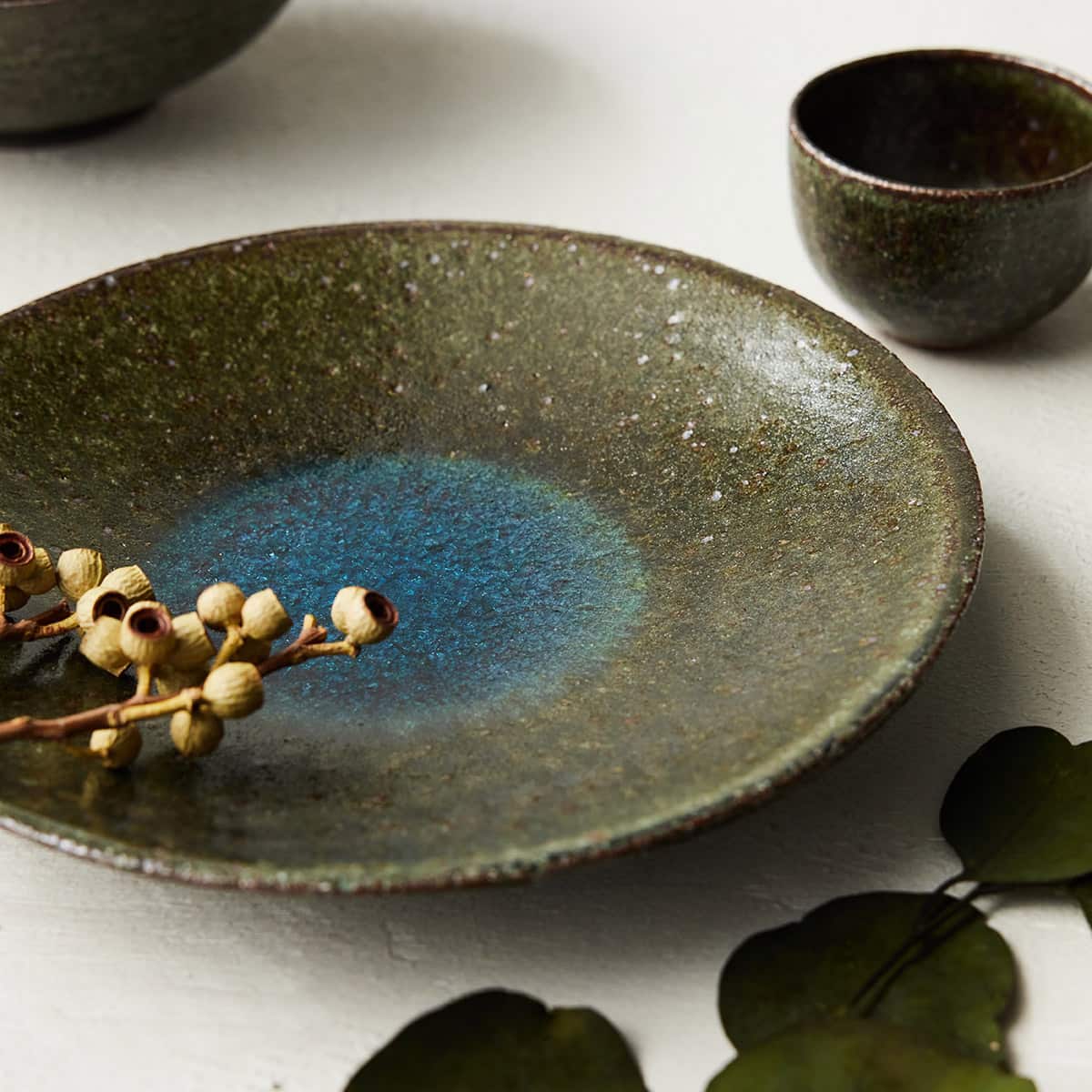 創業約80年の信楽焼窯元『丸十製陶』と、恵比寿のテーブルウェアセレクトショップ『THE HARVEST』の協力を得たコラボレーションアイテム。 ガラス系の2色のガラス薬を備えて、まるで氷のようなヒビ割れ模様(貫入)を表現。 凛とした表情の中にも、どこか優しさと温かさを感じさせ、趣のある風合いに仕上げました。