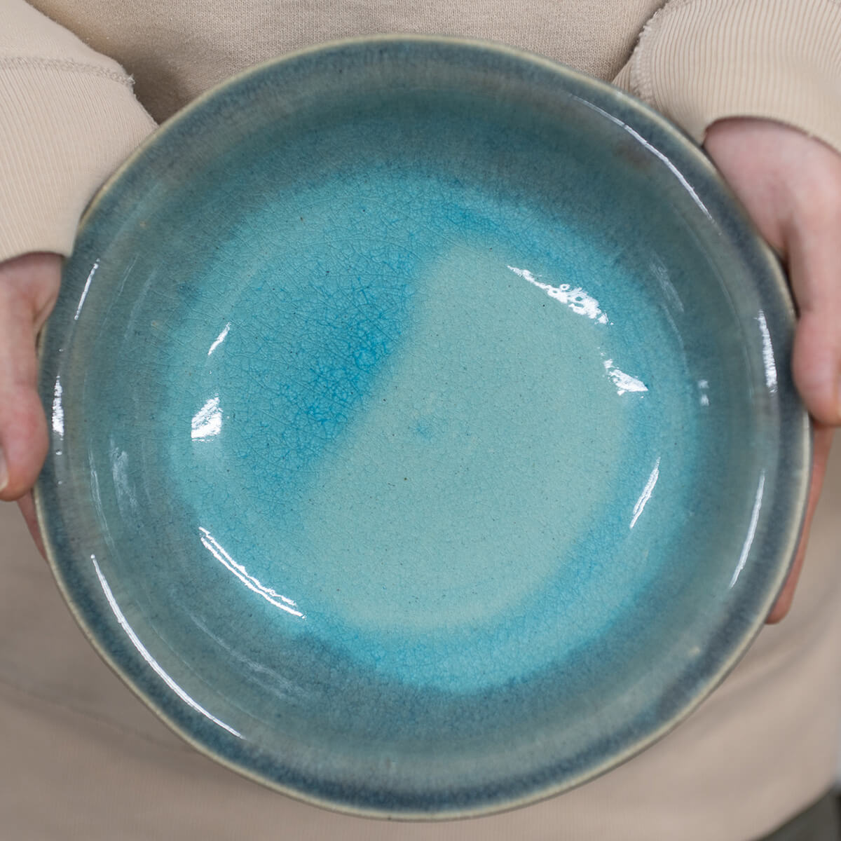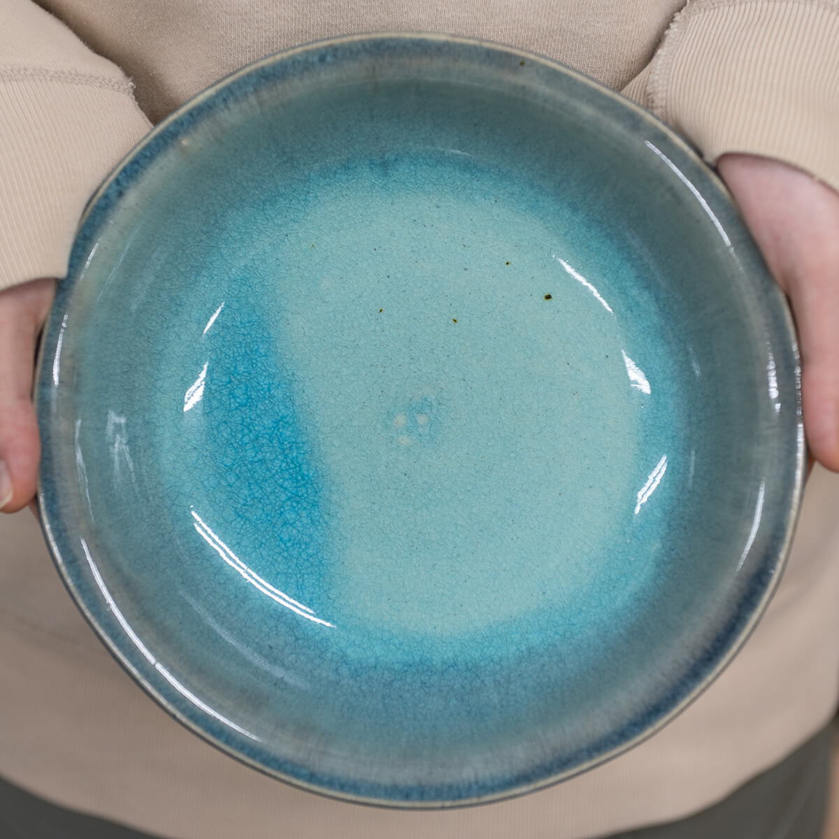 創業約80年の信楽焼窯元『丸十製陶』と、恵比寿のテーブルウェアセレクトショップ『THE HARVEST』の協力を得たコラボレーションアイテム。ガラス系の2色の釉薬を用いることで、まるで氷のようなヒビ割れ模様(貫入)を表現。凛とした表情の中にも、どこか優しさと温かさを感じさせる、趣ある風合いに仕上げました。土と炎が織りなす、ひとつとして同じものがない豊かな表情をお楽しみください。
