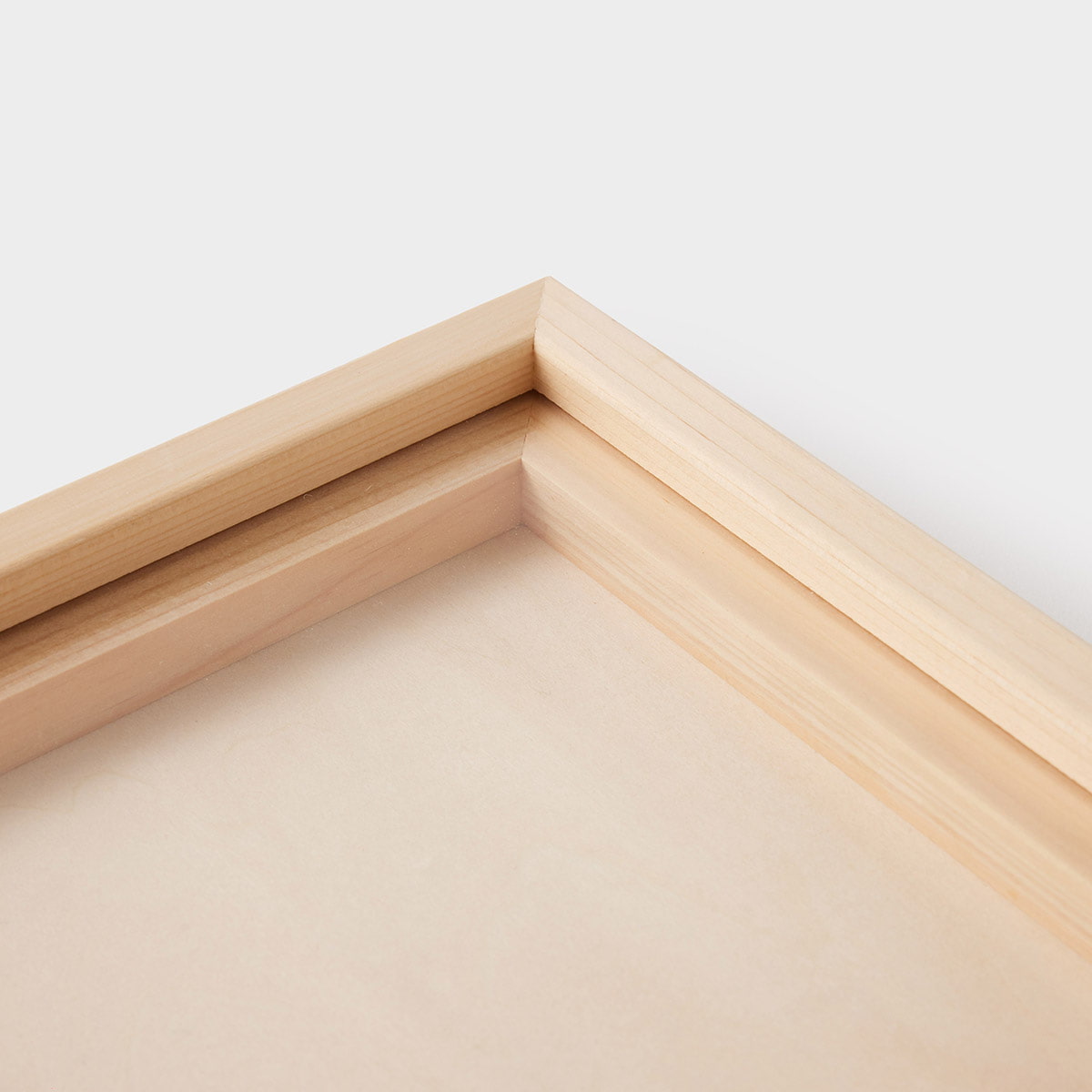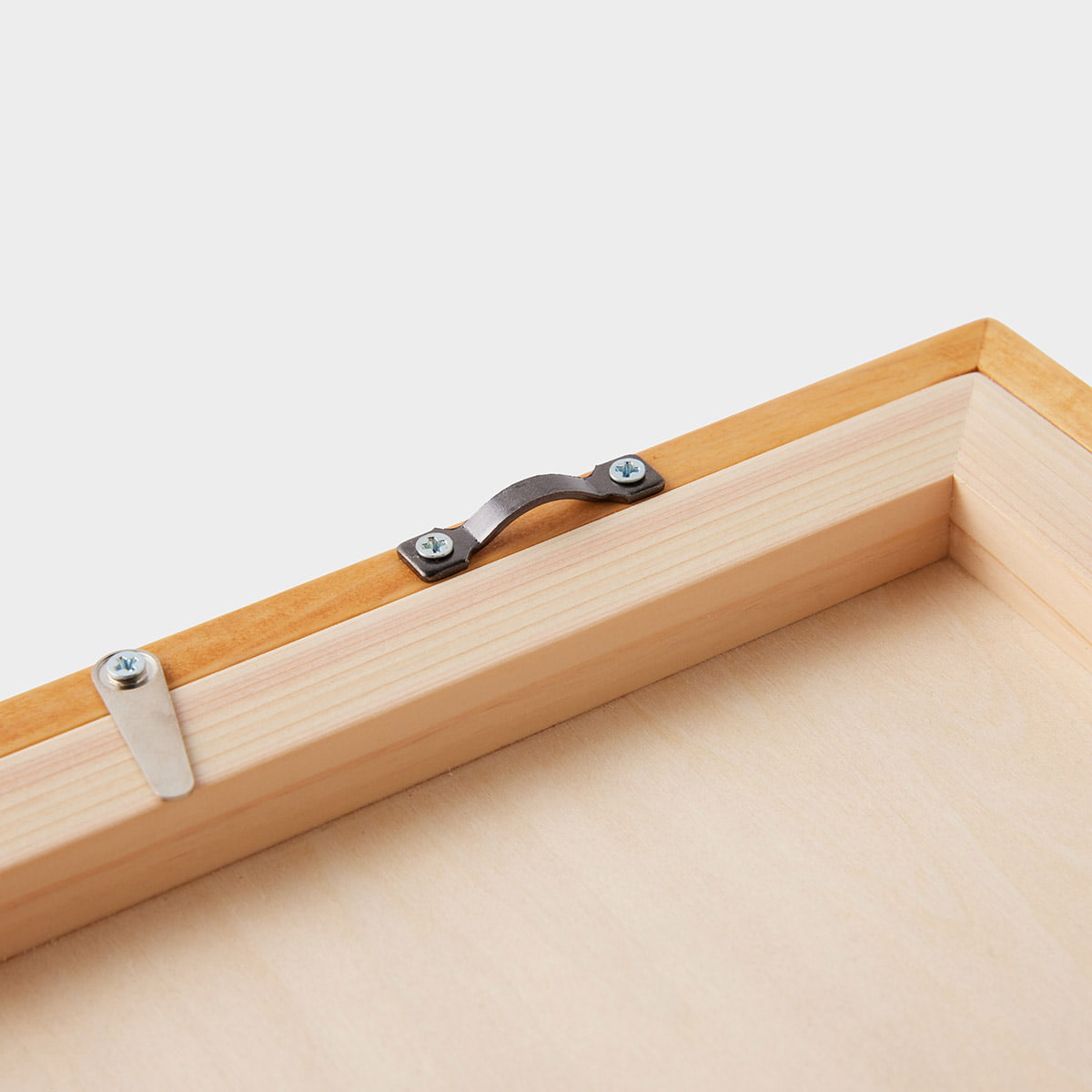 『木と暮らす未来プロジェクト』とOMUSUbeeとの協業で製作した、平面作品も立体作品も飾れる2WAY仕様のフォトフレーム。二酸化炭素をたくさん吸った奥多摩産ひのきの間伐材を使用しています。