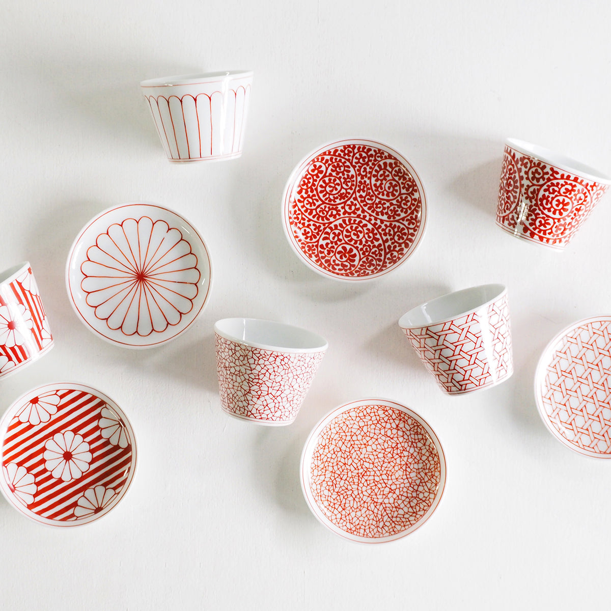 江戸時代に「そばちょこ」が大流行し、豊富なデザインが生み出されました。その中でも繰り返し描かれている縁起の良い文様を5種類選び小皿にしました。