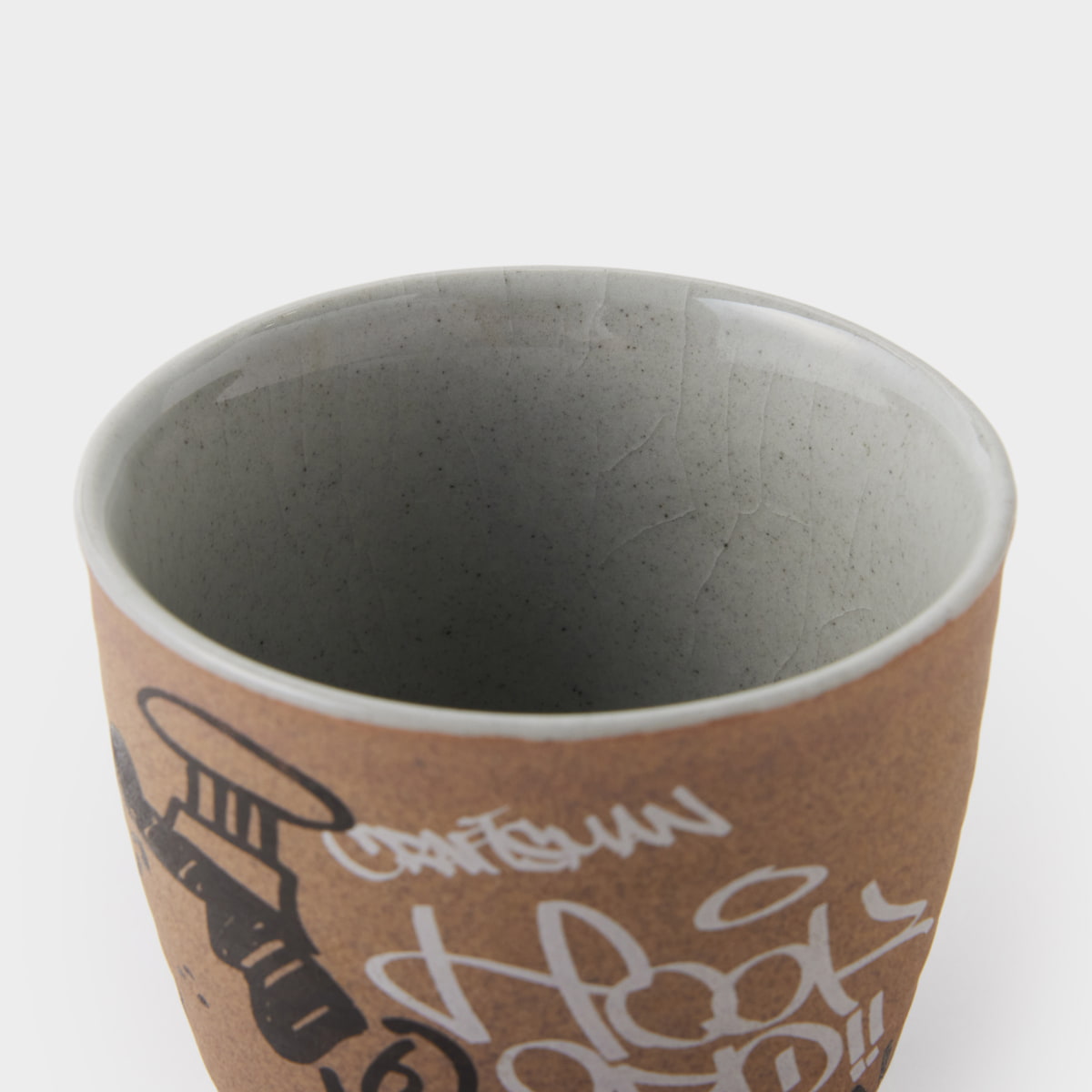 アーティストのCOOKさんのイラストを落とし込んだ波佐見焼の湯呑み。あえてマグカップではなく取っ手のない湯呑みにしたのは、お茶やコーヒーに限らず、お酒も楽しんで欲しいから!好きな飲み物と一緒に、アートもお楽しみください!