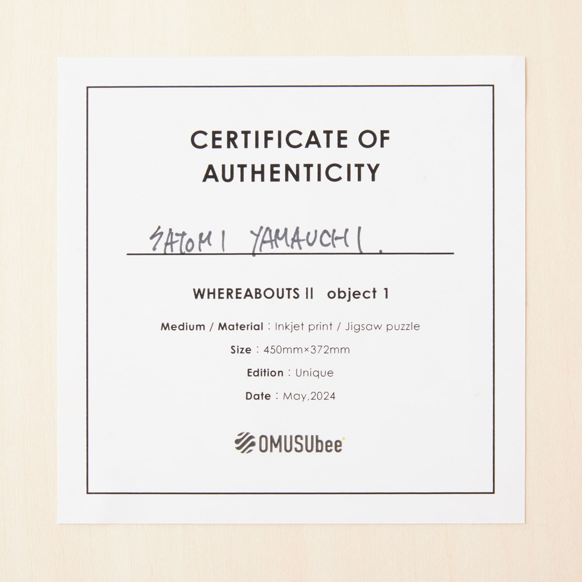 アートプリントは『木と暮らす未来プロジェクト』とOMUSUbeeとの協業で製作した、平面作品も立体作品も飾れる2WAY仕様のフォトフレームにパッケージしました。素材には『東京・森と市庭』が管理する、二酸化炭素をたくさん吸った奥多摩産の檜の間伐材を使用しています。