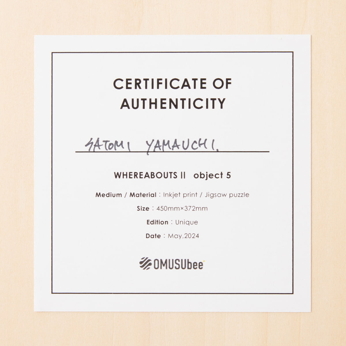 アートプリントは『木と暮らす未来プロジェクト』とOMUSUbeeとの協業で製作した、平面作品も立体作品も飾れる2WAY仕様のフォトフレームにパッケージしました。素材には『東京・森と市庭』が管理する、二酸化炭素をたくさん吸った奥多摩産の檜の間伐材を使用しています。